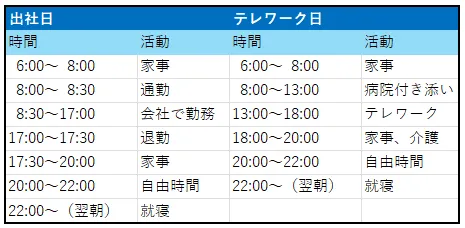 - 制度の活用: 「在宅勤務制度」と「時間単位の介護休暇」を組み合わせて適用しました。
