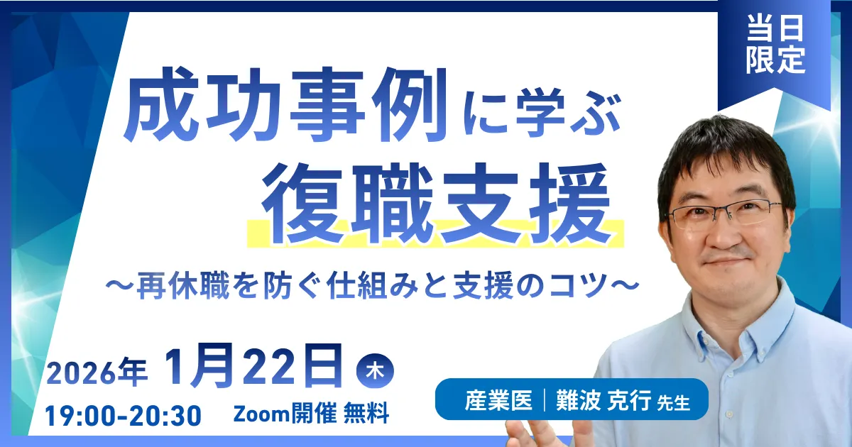 ★アーカイブなし★【1/22 Web開催】成功事例に学ぶ復職支援~再休職を防ぐ仕組みと支援のコツ~