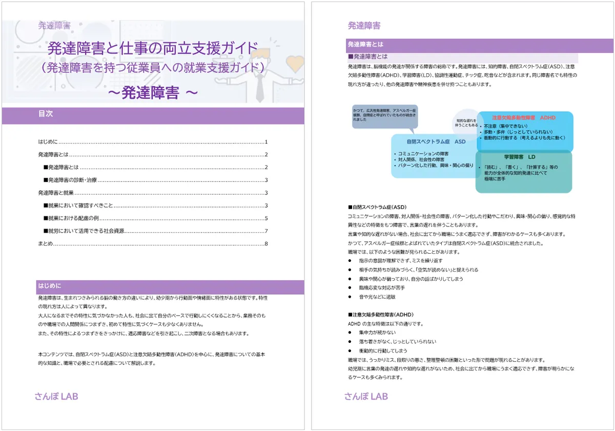 本コンテンツでは、自閉スペクトラム症(ASD)と注意欠陥多動性障害(ADHD)を中心に、発達障害についての基本的な知識と、職場で必要とされる配慮について解説します。