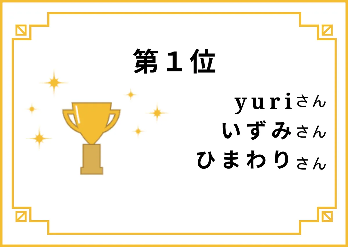 今回1位に輝いた「pin」さん、「Yuri」さん、「いずみ」さん、「ひまわり」さんにには、100ポイントをプレゼントいたします!