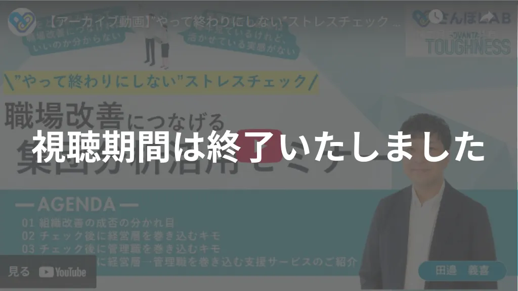 次年度こそはストレスチェックをより効果的に活用したいという方必見のセミナー動画をご紹介します。