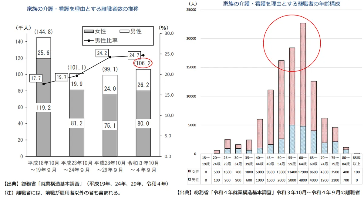 図:家族の介護・看護を理由とする離職者数の推移