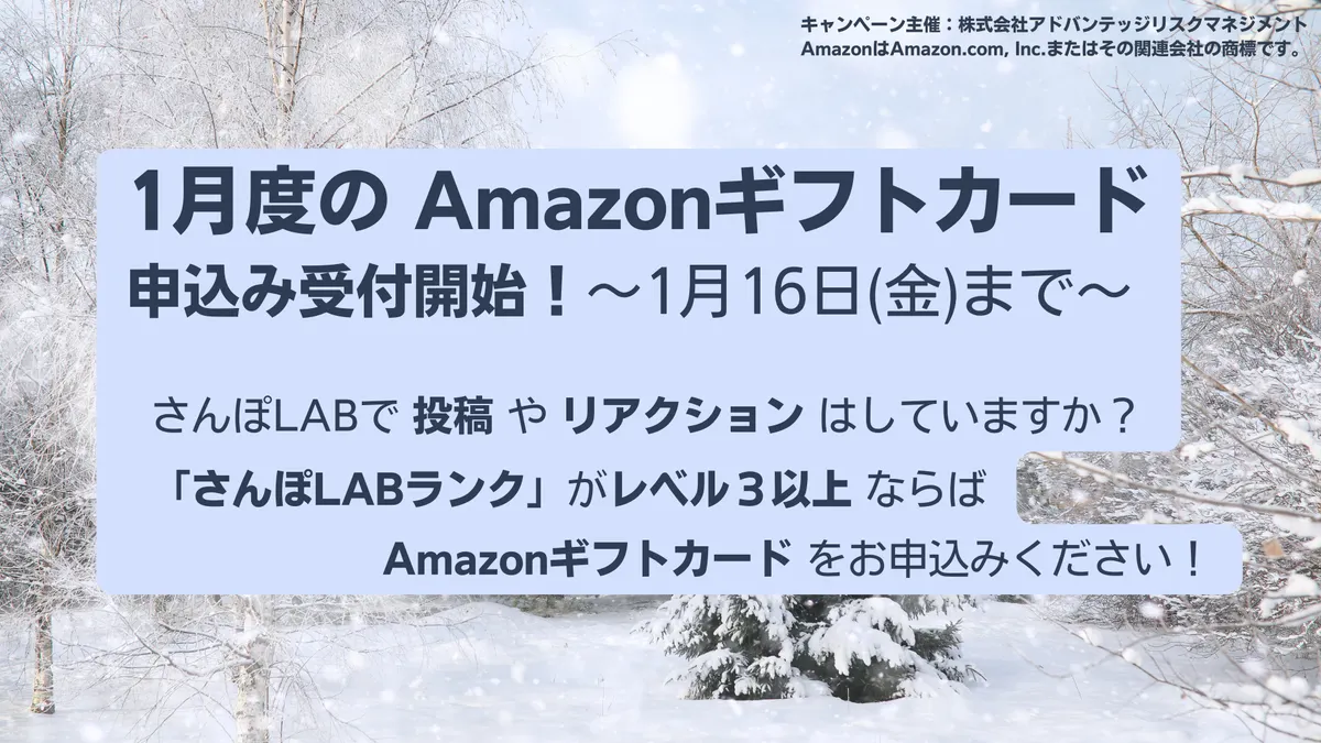 さんぽLABでは皆様に投稿やリアクションがあることで、現場で必要とされる情報が集まり、多くの方に関心を持っていただけき、さらに投稿が増えるといった好循環が生まれると考えています。些細なことでも結構ですので「いいね」や「お困りごとQ&A」でリアクションをいただけると嬉しいです。ランク3以降は、ランクが1上がるごとにささやかながらAmazonギフトカード1,000円分をお送りさせていただきます。ご自身のランクをご確認いただき、お申込みいただければと存じます。