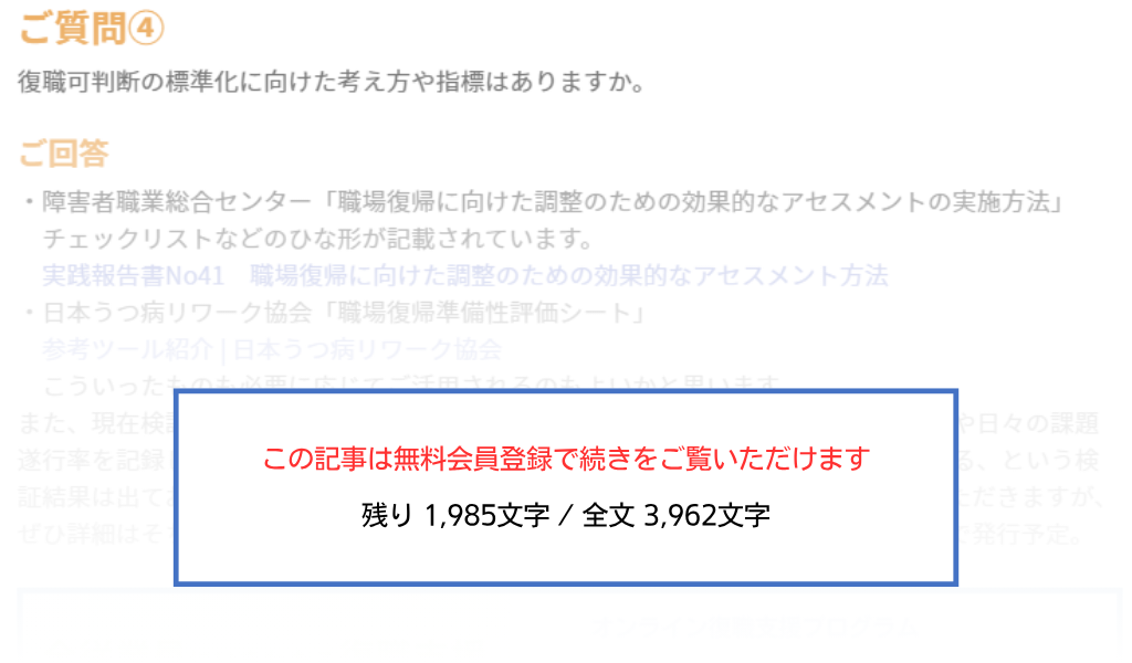 本記事では、アンケートでいただいた質問や課題について、講師の回答をまとめております。復職支援の選択肢としてリワークを適切に活用したいとお考えの皆さまにとって、判断材料となる情報をぜひご覧ください。