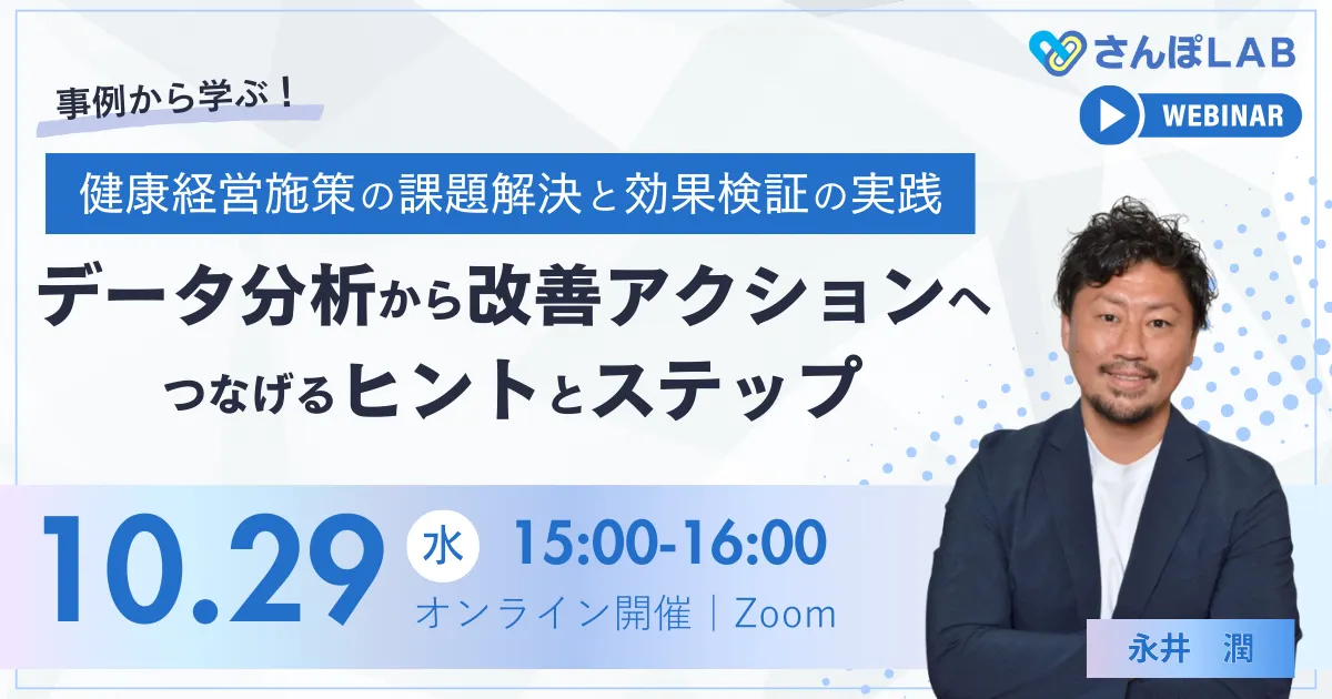 【10/29 Web開催】~事例から学ぶ!健康経営施策の課題解決と効果検証の実践~データ分析から改善アクションへつなげるヒントとステップ