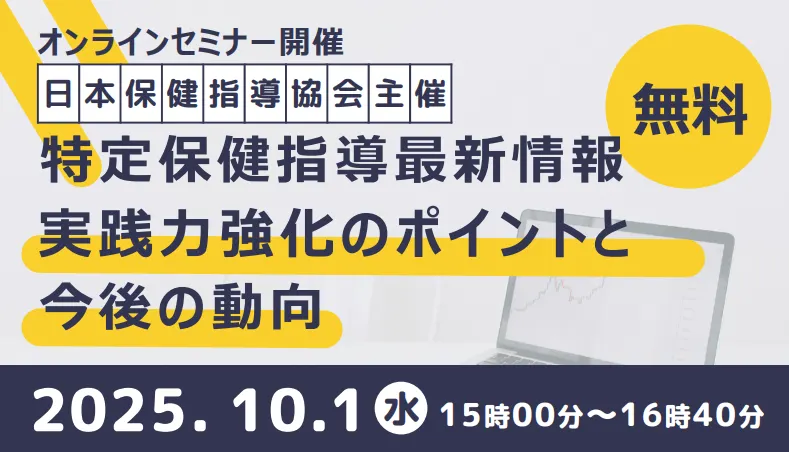 一般社団法人日本保健指導協会主催の、特定保健指導の最新情報をお伝えするウェビナーをご案内いたします。