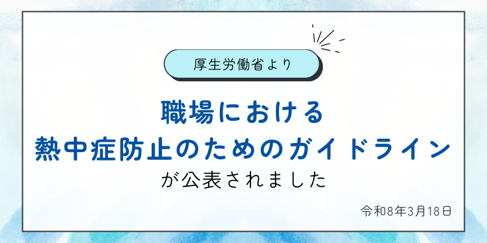 厚生労働省では、「職場における熱中症防止対策のための検討会 報告書 ~令和8年夏に向けて~」を取りまとめ、これを踏まえて「職場における熱中症防止のためのガイドライン」を策定しました。