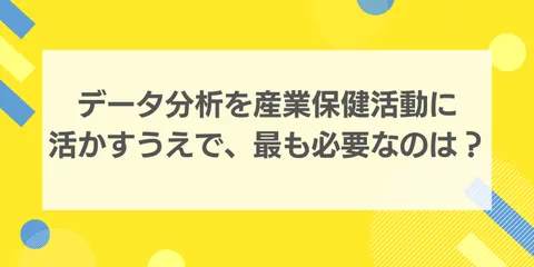 はじめに産業保健の現場には、毎年の健康診断データ、ストレスチェック結果、休職・復職者の記録など、活用可能なデータが多く存在します。しかし、データの効果的な活用につながらないという課題が多く聞かれます。今回は、「データ分析を産業保健活動に活かすうえで、最も必要だと感じる事は何か」について現場の声を集め