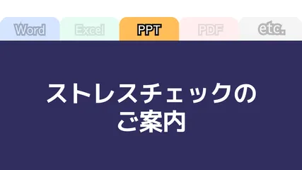 ストレスチェックのご案内【PowerPoint】 ハラスメントなどを含む80項目の調査票を使用する事業場も増えており、より詳細なストレス評価で職場改善につなげやすくなっています。面接指導・事後措置高ストレス者と判定された労働者のうち、実施者が必要と判断した場合には、医師による面接指導が行われます。面接指導の申し出は労働者から事業者に行われます。面接